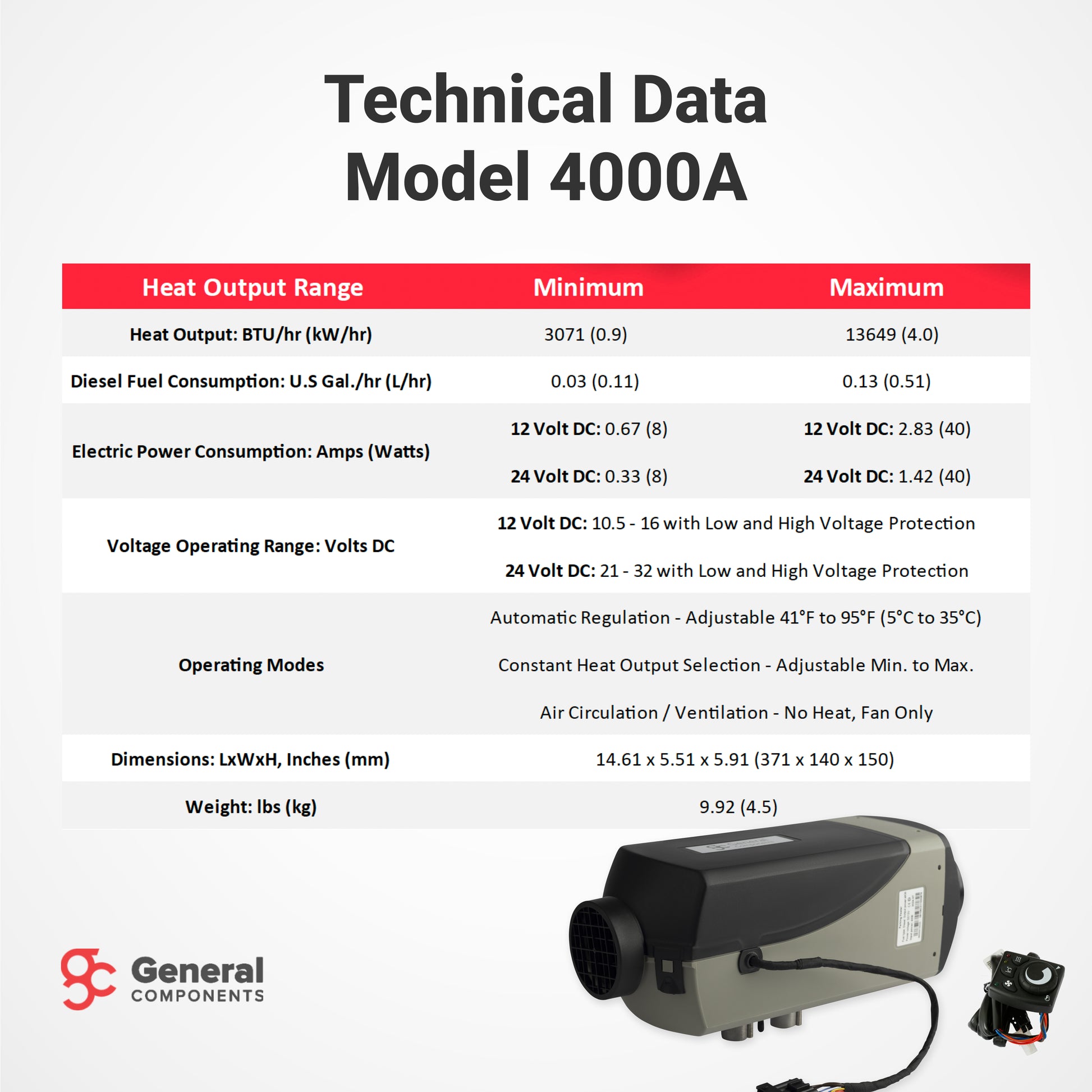 - Versatile Fuel Options: Supports diesel/kerosene or gasoline fuels with 12V and 24V compatibility.