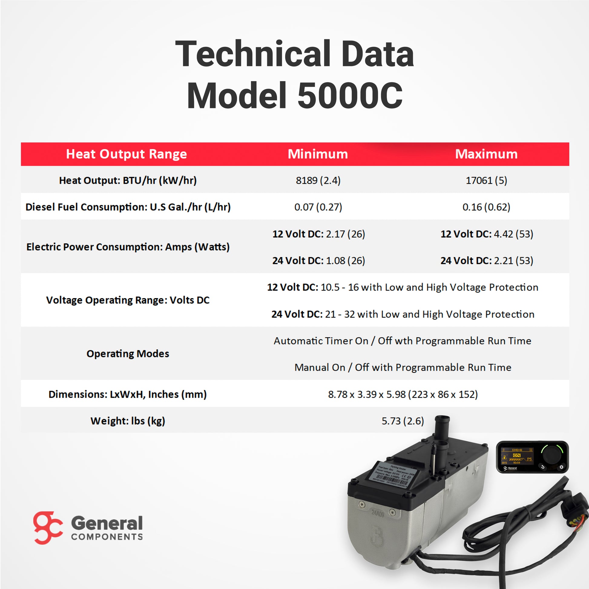 • Powerful Heating: Provides 5kW (17,000 BTU) of heat, ideal for warming your boat’s interior and engine.
